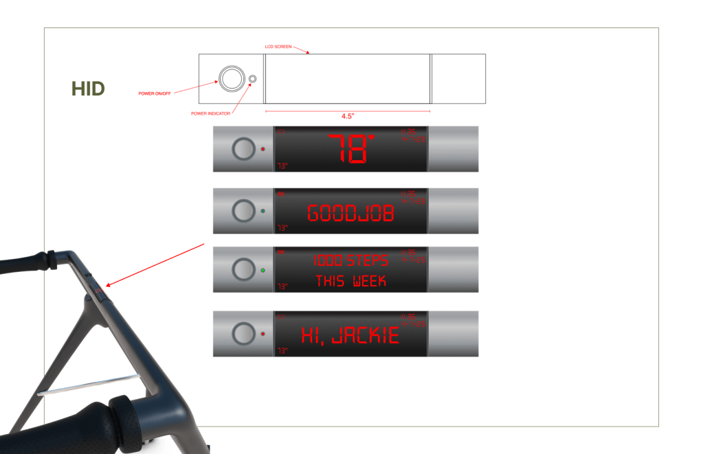 The human interface device which is attached to the walker allows data collection for health and location monitoring which can be shared with family members, doctors and caregivers for a better understanding of patients needs.